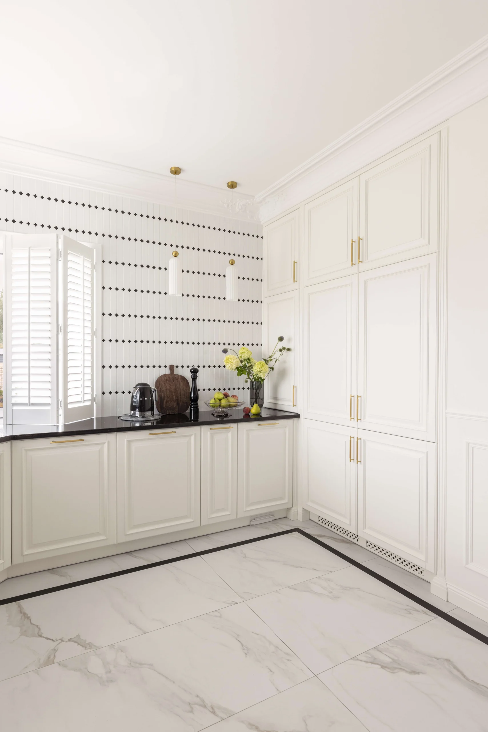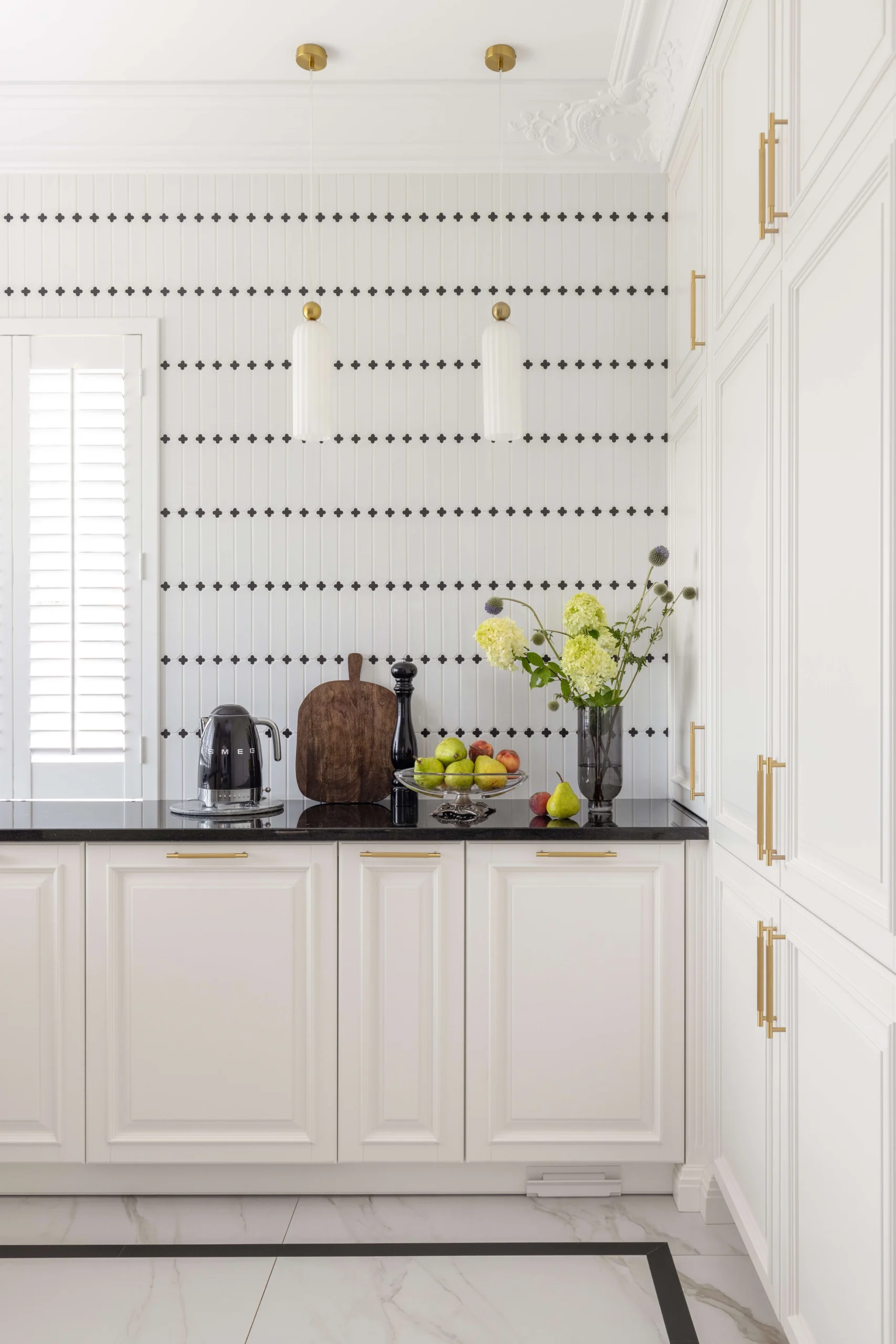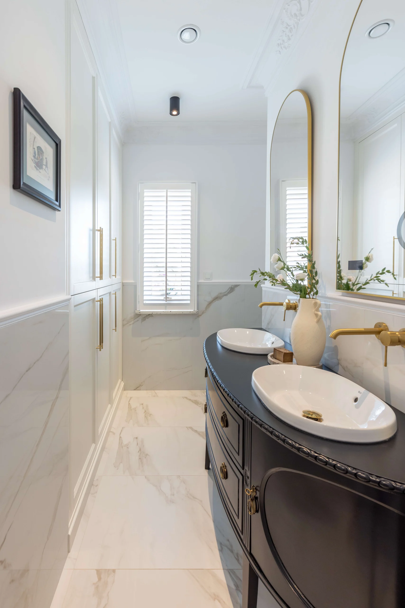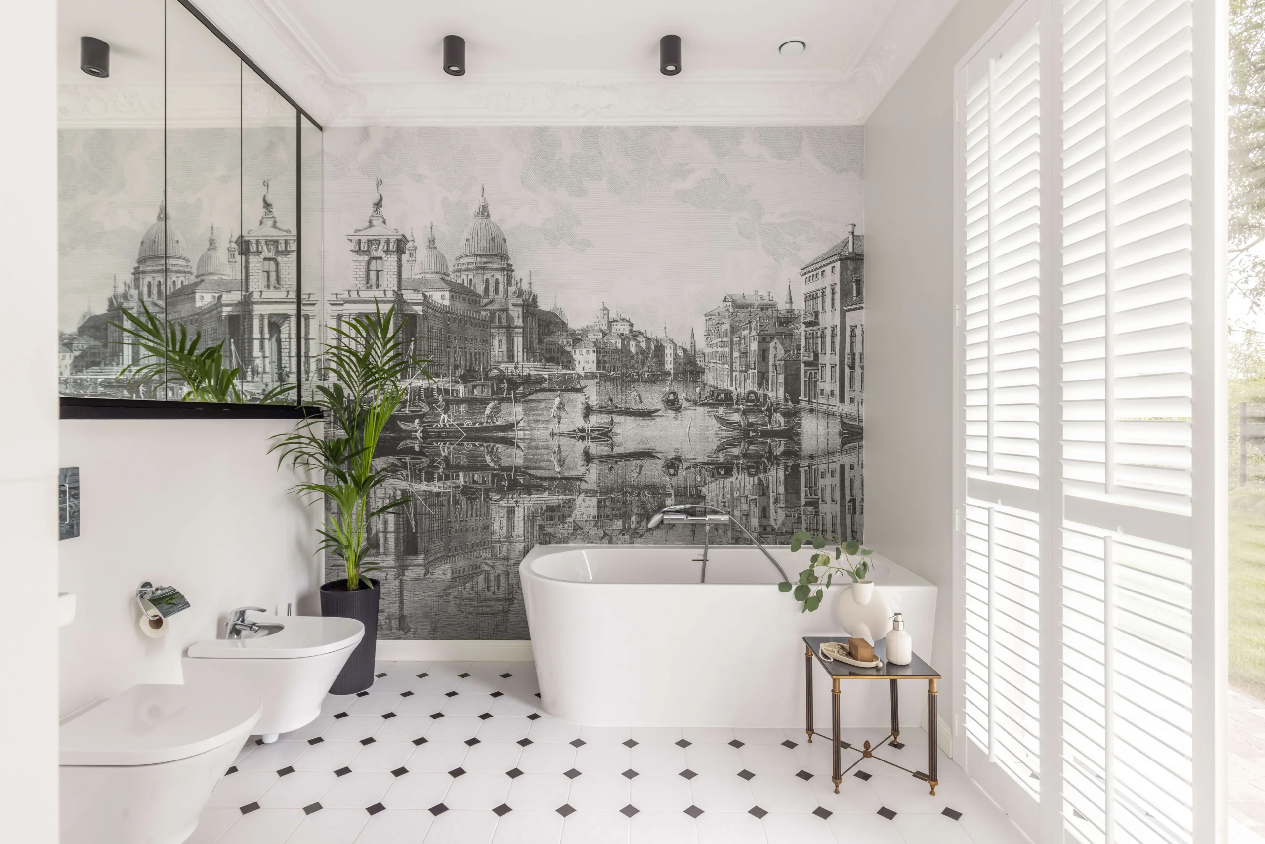 Dom kolekcjonera sztuki, w którym całe wnętrze zostało zaprojektowane w klasycznych odcieniach czerni i bieli, harmonijnie współgrających z zabytkowymi meblami i dziełami sztuki. Każdy element przestrzeni jest starannie dopasowany, podkreślając elegancję oraz wyjątkowy charakter unikatowej kolekcji właściciela.
